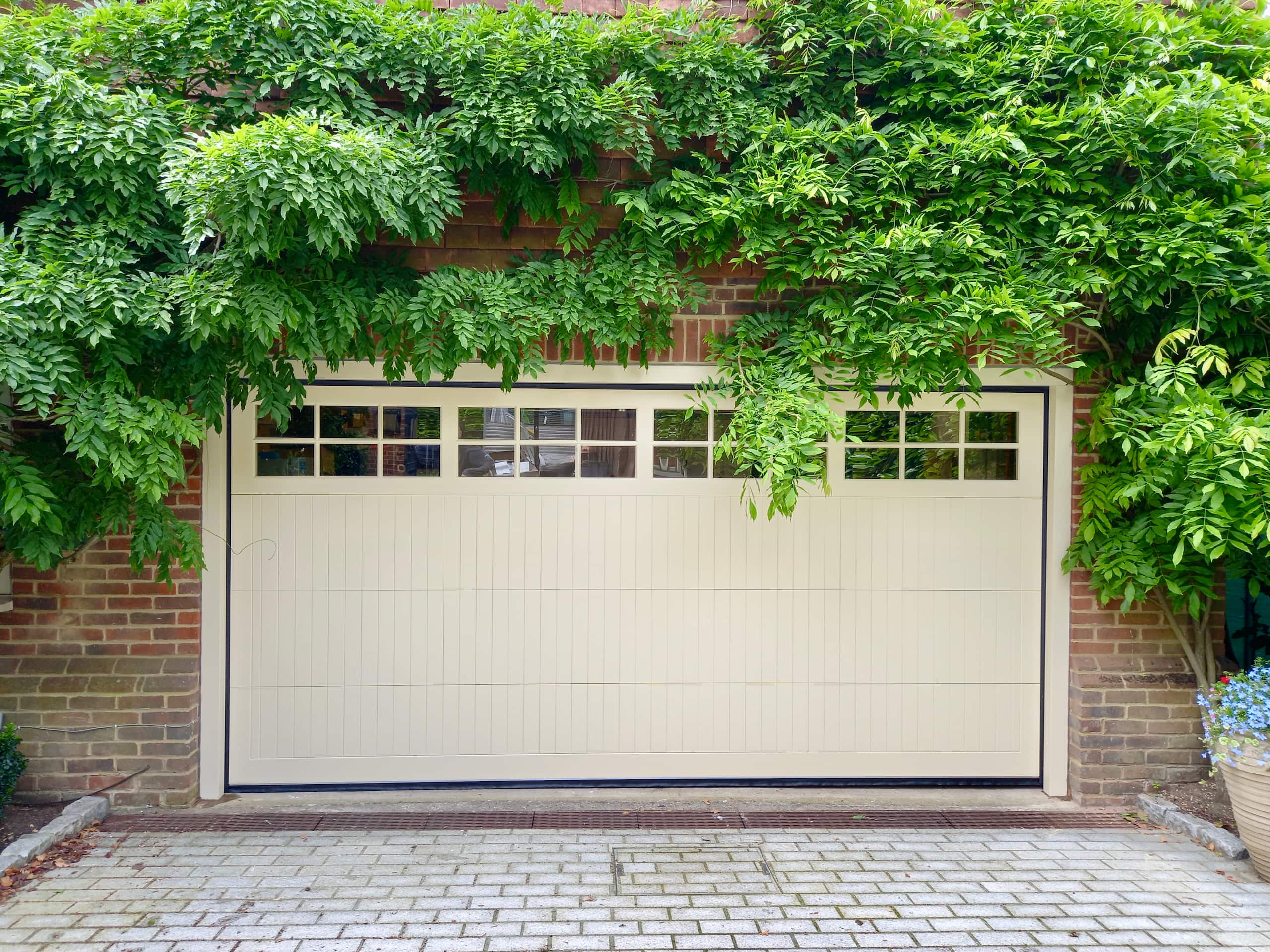 This property has been fitted with two made-to-order CDC GRP (fibreglass composite), wood effect, up and over garage doors in the ‘Cobham’ style.